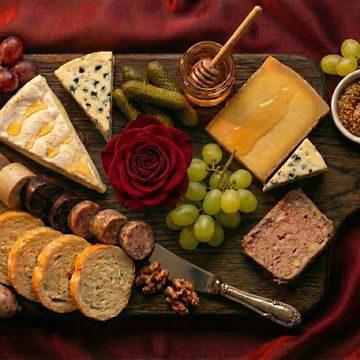 An elevated selection of artisanal cheeses, cured meats, fresh fruits, and gourmet accompaniments—curated with our signature flair.