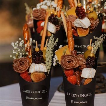 Portable, beautifully packed grazing options with mini cheese selections, fresh fruits, charcuterie pairings, and sweet add-ons.