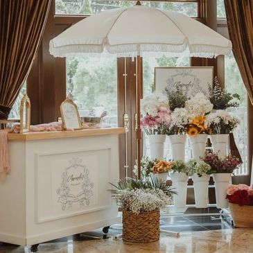 The Bloom Bar features a selection of curated stems, soft palettes, and delicate greenery, allowing each guest to assemble a piece that feels both personal and beautifully composed. A lovely moment of charm and craftsmanship.