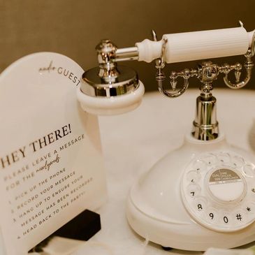 Guests leave spoken or filmed messages in a beautifully styled setting, creating a heartfelt collection of memories captured with clarity and warmth. A refined twist on the classic guestbook, designed to be treasured long after the celebration.